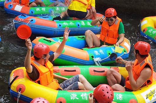 巽寮灣位于惠東縣城南部,地處北回歸線以南,南海大亞灣的東部,依山傍海,山海相嵌,海天交融。三角島是由三座相連的小山組成小島,島上泉水清澈,沙質柔軟,峰奇石怪。響水河漂流驚險刺激,沿途的團隊潑水比賽更體現了團隊協作的力量。