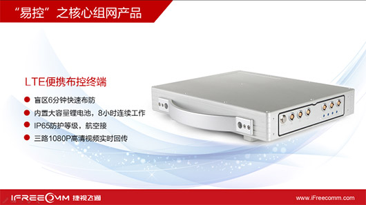本次安博會上全新發布的“易控”系統之核心產品——臨時布控箱無線終端是一款用于4G無線寬帶接入解決方案的終端產品,支持高速移動下的寬帶多媒體接入,包括監控視頻、語音和上網等業務。 基于TDD-LTE通信制式精心研制的寬帶無線終端模,可用于遠距離視頻回傳,實現臨時布控,以滿足用戶臨時布控寬帶無線業務接入的需求。實現”,盲區6分鐘快速布防“這對于未來城市安防布控系統的高效運作將是劃時代的意義。